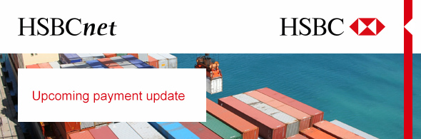 This communication is provided by HSBC Bank plc on behalf of the member of the HSBC Group that has contracted with your organisation for the provision of HSBCnet services. You received this e-mail notification because you are a registered User of HSBCnet. Should you have any concerns regarding the validity of this message, please contact your local HSBCnet customer support.