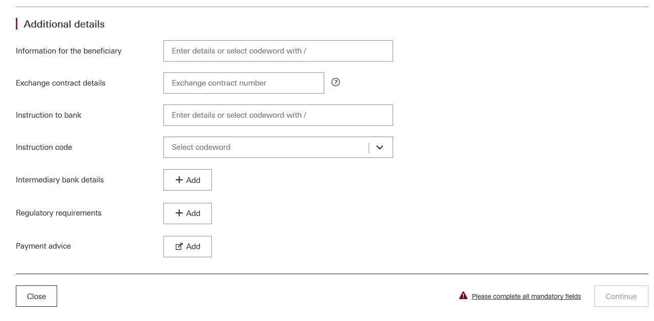 4. Si vous envoyez des fichiers de paiement au moyen du service de téléchargement de fichiers ou de HSBC Connect, vous devez inclure l’information obligatoire relative à l’objet de paiement dans vos fichiers de paiement.