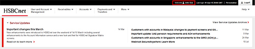 Note: in the week prior to a service maintenance period, a Service Update banner confirming the maintenance window will be available post-logon in HSBCnet. Please review this information in advance of any planned maintenance period to confirm the date and time.